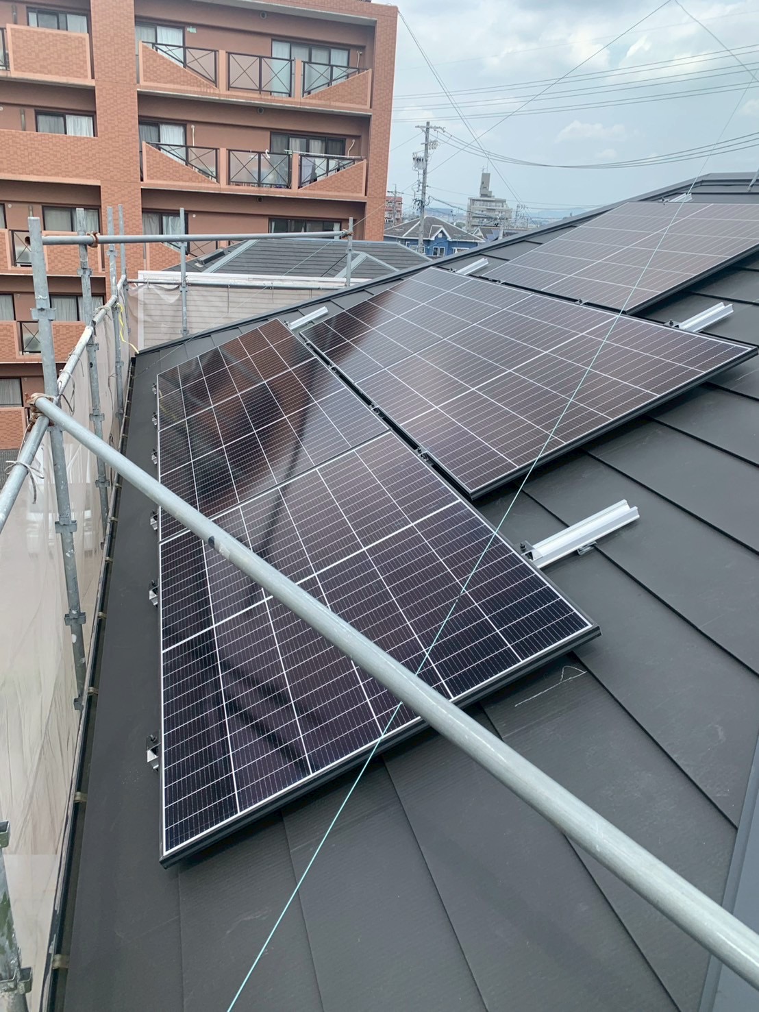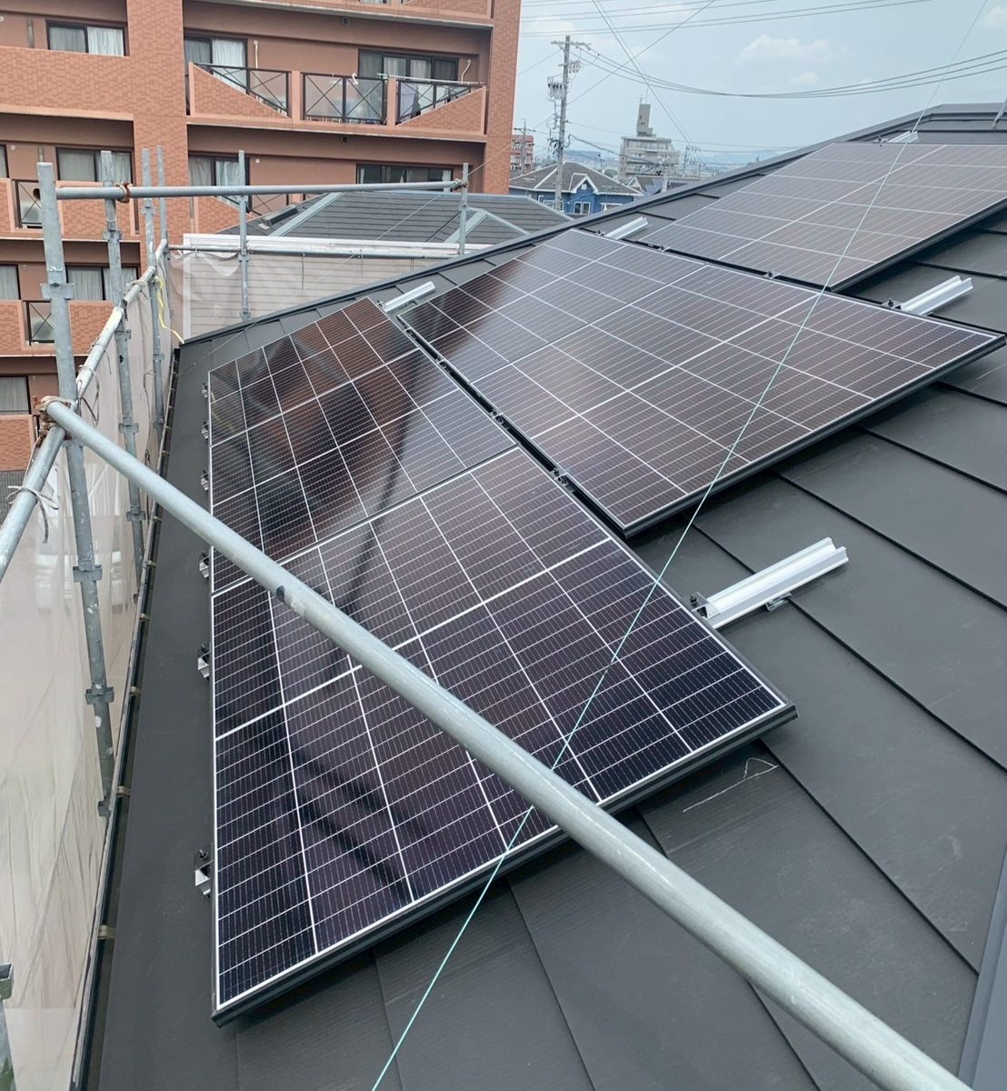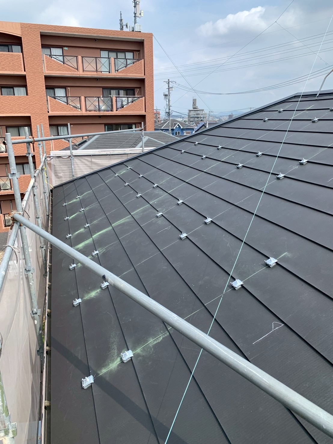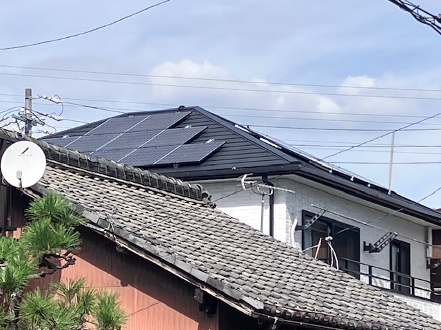 を設置されました。スレート屋根をカバー工法でガルバニウム鋼板横葺きにされてから太陽光を設置されました。