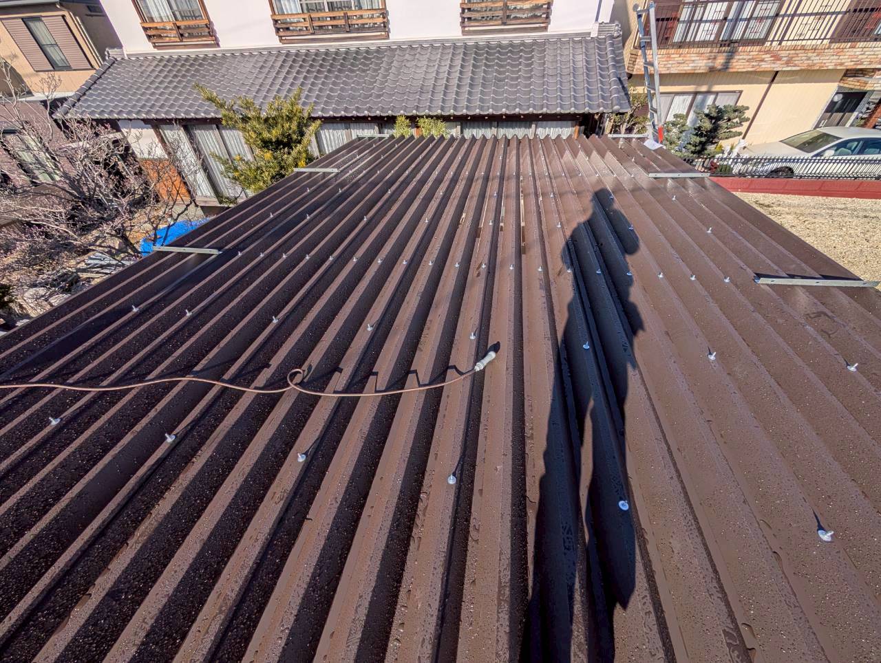 車庫折板屋根葺き替え工事+太陽光撤去復旧工事 名古屋市緑区I様邸